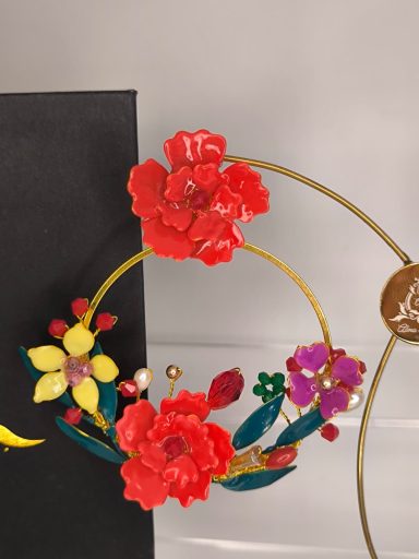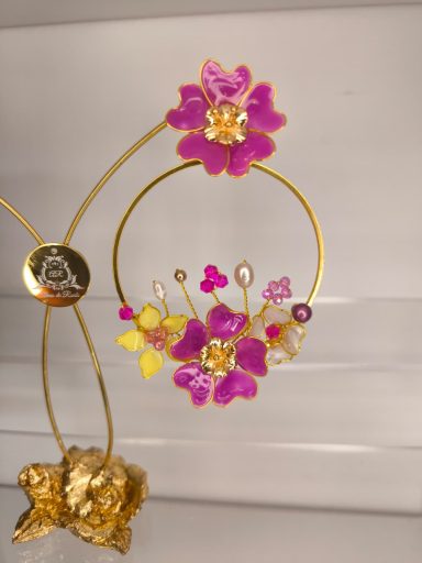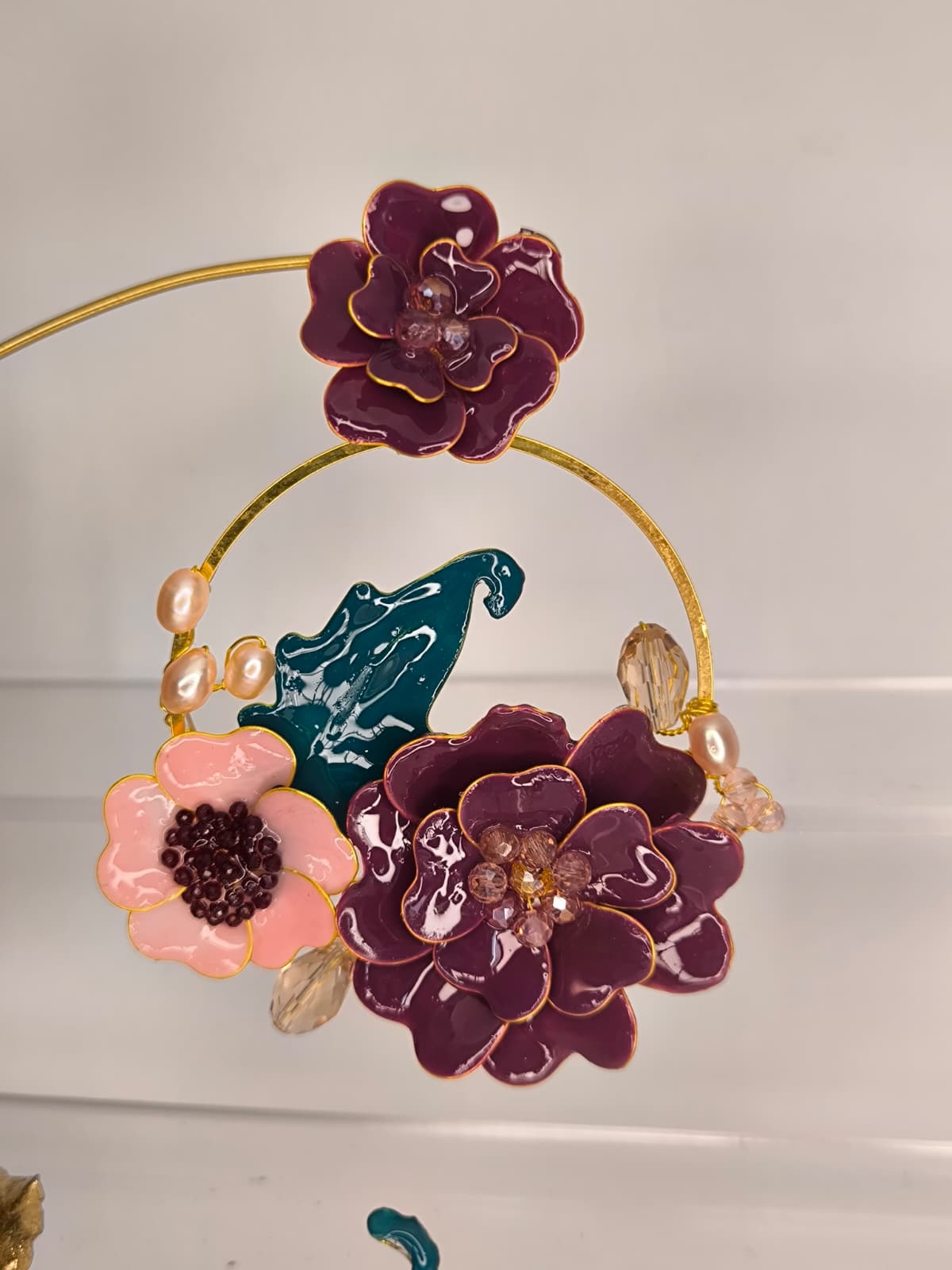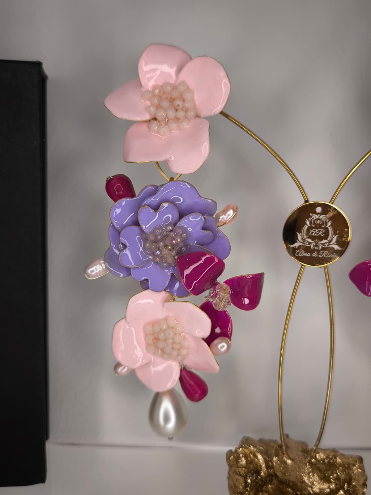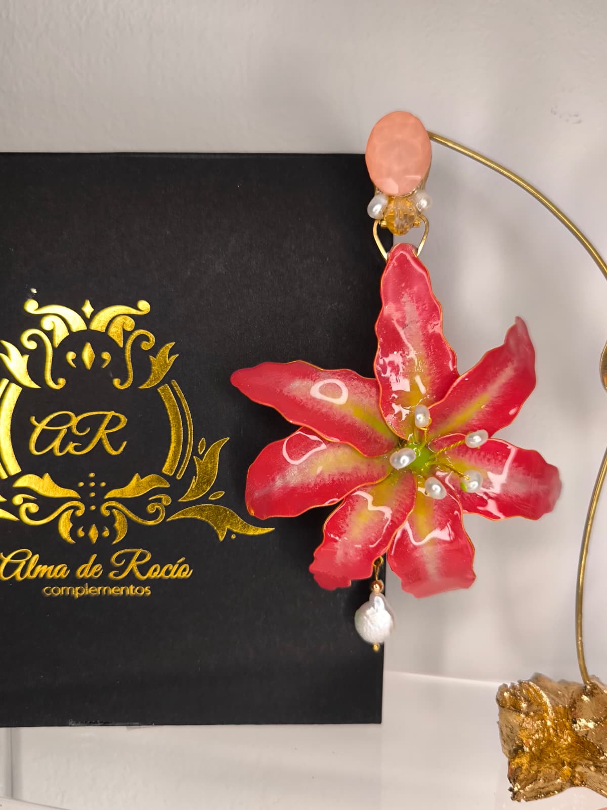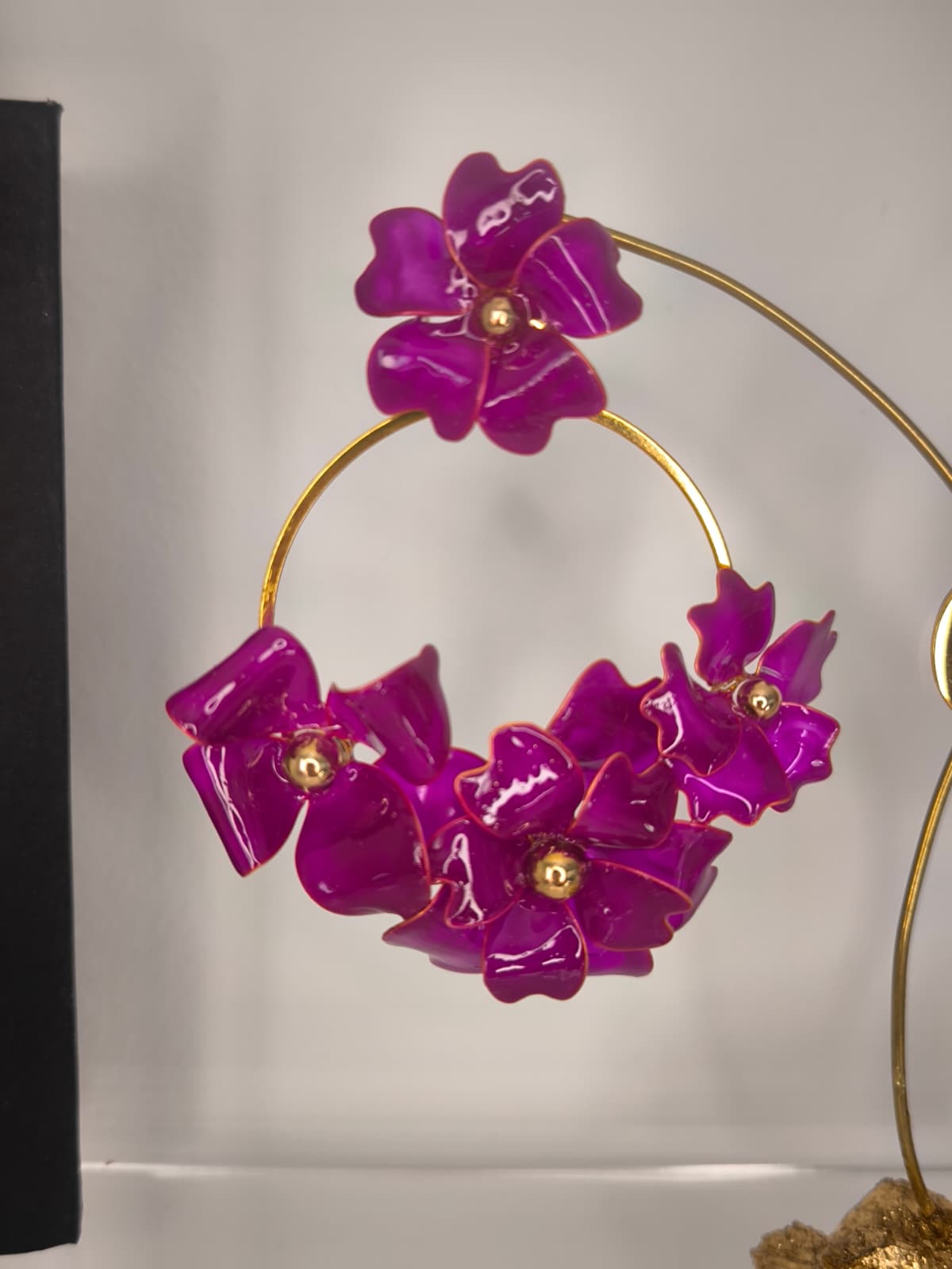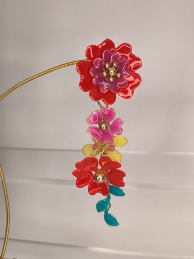 Estos pendientes están diseñados partiendo de un rollo de alambre, dándoles forma a cada pétalo minuciosamente, para posteriormente esmaltarlos de forma delicada para que sean super ligeros y con gran variedad colores vivos que nos evocan a la primavera.
